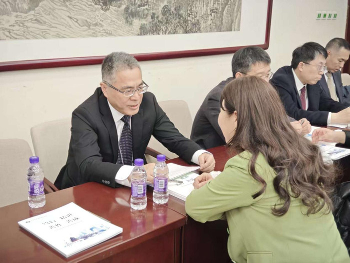 北京市经济和信息化局党组书记、局长姜广智在北京两会开幕前夕的市人大代表询问、政协委员咨询活动现场接受代表询问。新京报贝壳财经记者罗亦丹摄